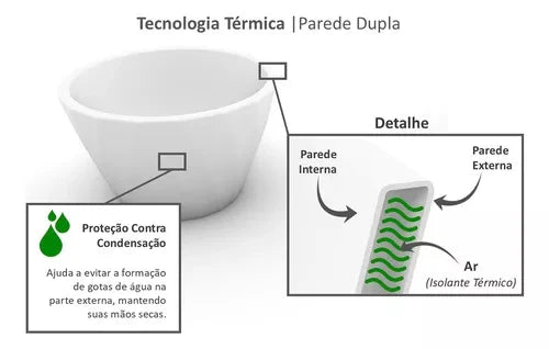 ORGANIZAÇÃO - Essas mesmas paredes duplas impedem que a água escorra na parede externa, mantendo a mesa ou o piso sempre secos e organizados!